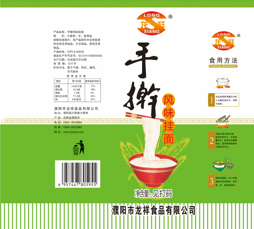 濮陽市龍祥食品有限公司位于河南省濮陽縣戶部寨鎮(zhèn)小濮州,始建于1994年,前期投資200萬元,經(jīng)過幾年的努力,大力開發(fā)市場,由于市場的需求量急劇上升,出現(xiàn)供不應(yīng)求,于2004年擴(kuò)建,建成一座新型的現(xiàn)代化面粉加工企業(yè),并擁有全國先進(jìn)全自動生產(chǎn)設(shè)備一套,產(chǎn)量由以前的100噸/天,提高到現(xiàn)在400噸/天。 2012年再次擴(kuò)大規(guī)模申請為濮陽市龍祥食品有限公司,注冊資金500萬元。2012年又投資800萬元新建掛面生產(chǎn)線一條,日產(chǎn)掛面50噸。龍祥食品有限公司現(xiàn)有職工120余人,總工程師1人,專業(yè)技術(shù)人員10人,經(jīng)濟(jì)師1人,會計(jì)師1人,銷售人員2人,優(yōu)秀專業(yè)人員20余人?! ↓埾楣咀詣?chuàng)建以來,社會效益十分可觀。公司一直以“今天的質(zhì)量,明天的市場”為信念,“一切為了客戶需求,竭誠追求完美品質(zhì)”為企業(yè)宗旨,走專業(yè)化經(jīng)營和職業(yè)化管理的路子。